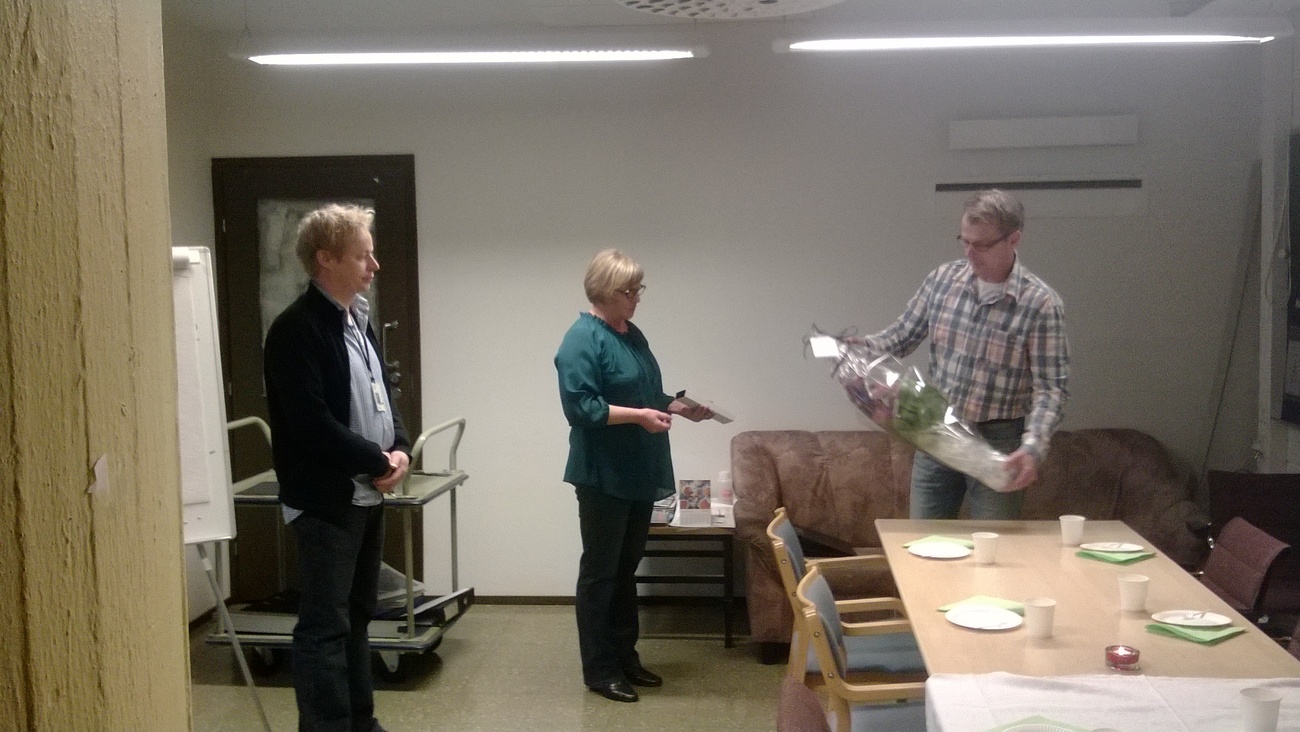 Yksi aikakausi tuli Kuojakkeen jakelutoimipaikassa päätökseen kun pitkäaikaisen ja pidetyn työntekijän Tuula Jauhiaisen työuran päätöstä iteljoonina juhlittiin kakkukahvien merkeissä. Saatiinpa sanavalmis ja aina iloinen Tuulakin hämmentymään hetkeksi pyydettäessä lupaa tehdä eläkkeellelompsahduksesta pieni juttu osaston sivuille. Kotvan hämmennyksen ja mietinnän jälkeen lupa heltisi - ja kuviakin saa julkaista! Tuula on tehnyt postilla pitkän päivätyön. Mittariin kertyi 27 vuotta. "Vuonna 1986 tulin Kuuslahden kyläpostiin töihin ja sille tielle jäin", kertoo Tuula. Tätä ennen hän työskenteli mm. leipomossa kymmenen vuoden ajan. "Niin, että on sitä tullut töitä tehtyä muuallakin kuin postilla." Epäilemättä hyvä niin! 1989 Tuula siirtyi Puijonlaakson jakelutoimipaikkaan ja sieltä tie toi lopulta Kuojakkeeseen Särkiniemeen, jossa mansikkakakun ja kahvin ääressä jopa juhlakalu herkistyi: "Hyvin olen viihtynyt kaiken tämän ajan. Osaeläkejärjestely oli loistava kohdallani, jonka avulla jaksoi hyvin. Välillä on ollut rankempaakin, mutta mottoni on "Aina kaikesta selviää!", Tuula vakuuttaa. Varmasti näin. Kuopion osasto toivottaa Tuulalle lokoisia eläkepäiviä!