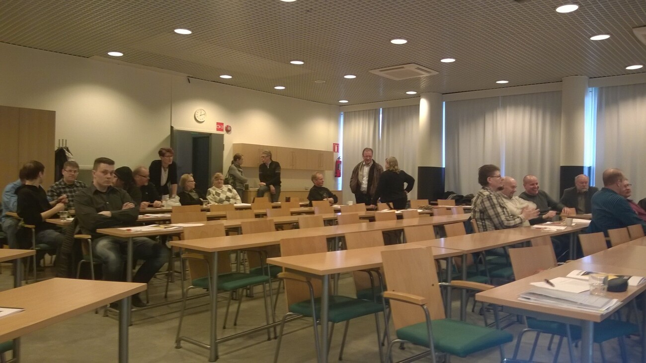 Upean keväisestä auringonpaisteesta huolimatta Kuopion osaston sääntömääräinen vuosikokous saatiin vedettyä läpi hotelli Puijonsarven kokoustilassa. Reilun 30:n kokousedustajan kesken saatiin kokoukselle arvokas, mutta leppoisa tunnelma ja saatiinpa uusi toimikuntakin leivottua vuodelle 2015! Kokouksen veti vanhalla rutiinilla läpi jouhevaan tahtiin puheenjohtajana Juha Heikkinen. Kävipä niin että Juhi valittiin myös tulevalle kaudelle osaston puheenjohtajaksi, vaikka oli aiemmin hieman empinytkin jatkoaan. Onnittelut valinnasta. Myös muut toimikunnan toimet ja paikat valittiin ja mikä ilahduttavaa, saatiin toimikunta vaihteeksi täysvahvuiseksi, eli kymmenen varsinaista jäsentä sekä viisi varajäsentä. Varapuheenjohtajaksi valittiin Timo Peippo, sihteeriksi/jäsenkirjuriksi/tiedotusvastaavaksi Miko Haarala, rahastonhoitajaksi Tarja Riikonen. Muut toimikunnan jäsenpaikat täyttävät uudelleen valittuina Kalle Saikkonen, Esko Pakarinen sekä Kari Kettunen. Juha-Pekka Hakulinen sekä Jari Koponen tulivat valituiksi "uusvanhoina veteraaneina", mutta täysin uusina kasvoina remmiin liittyy myös Katja Räsänen (Matkuksen jakelu) sekä Jani Hyvönen Nilsiästä (Jani toimii myös luottamusmiehenä Nilsiä-Nurmes-Rautavaara- akselilla). Varajäseniksi valittiin Tero Pitkänen, Hannu Jokitörmä, Tuija Miettinen, Jimmy Virén sekä Petri Julkunen. Onnittelut kaikille valinnasta sekä menestystä uudelle toimikunnalle! |